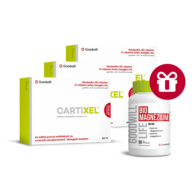 A Cartixel fél éves csomag mellé 1 db Biomagnézium 90x étrend-kiegészítő kapszulát küldünk Önnek ajándékba!