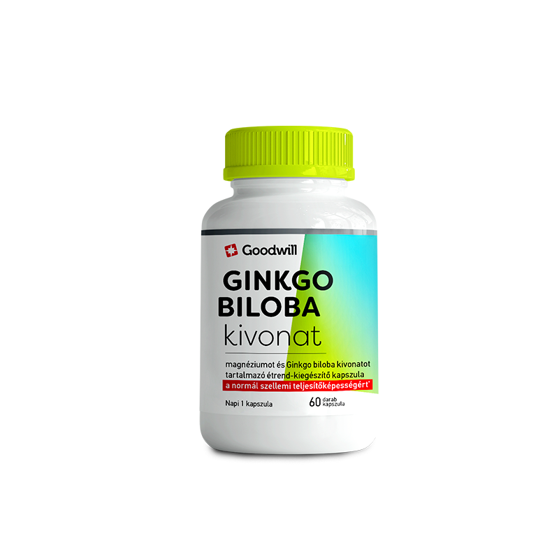 Magnéziumot és ginkgo biloba kivonatot tartalmazó étrend-kiegészítő kapszula.