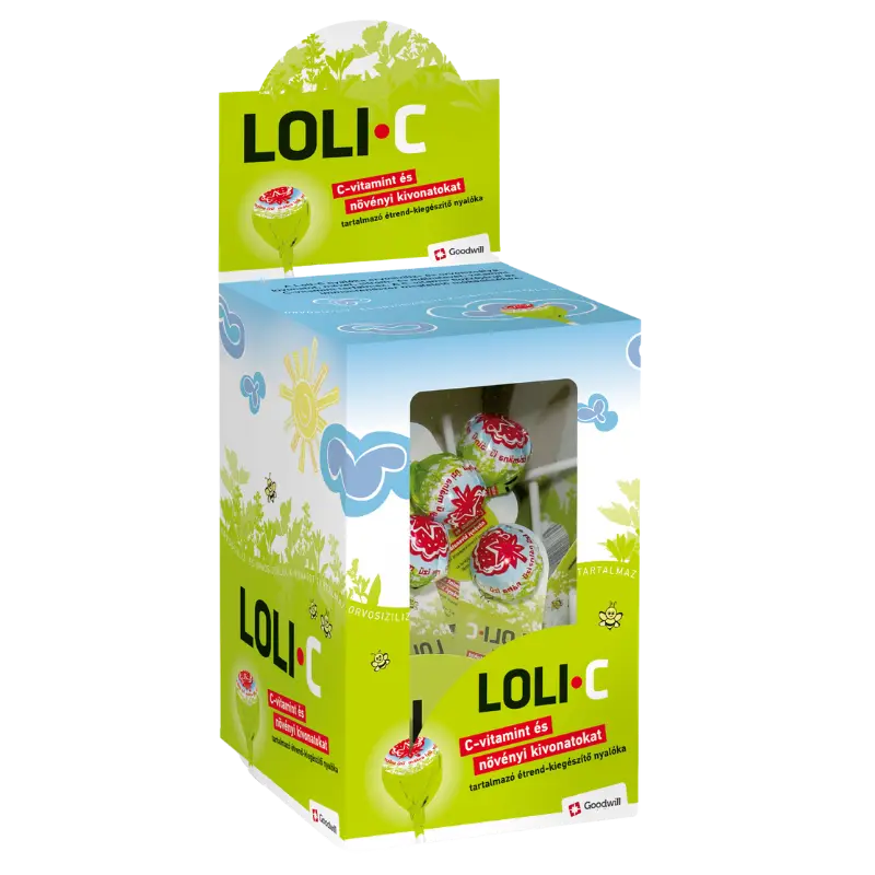 A Loli-C étrend-kiegészítő nyalóka orvosi ziliz és orvosi zsálya kivonatot, mézet, citrom- és málnalevet, valamint C-vitamint tartalmaz.