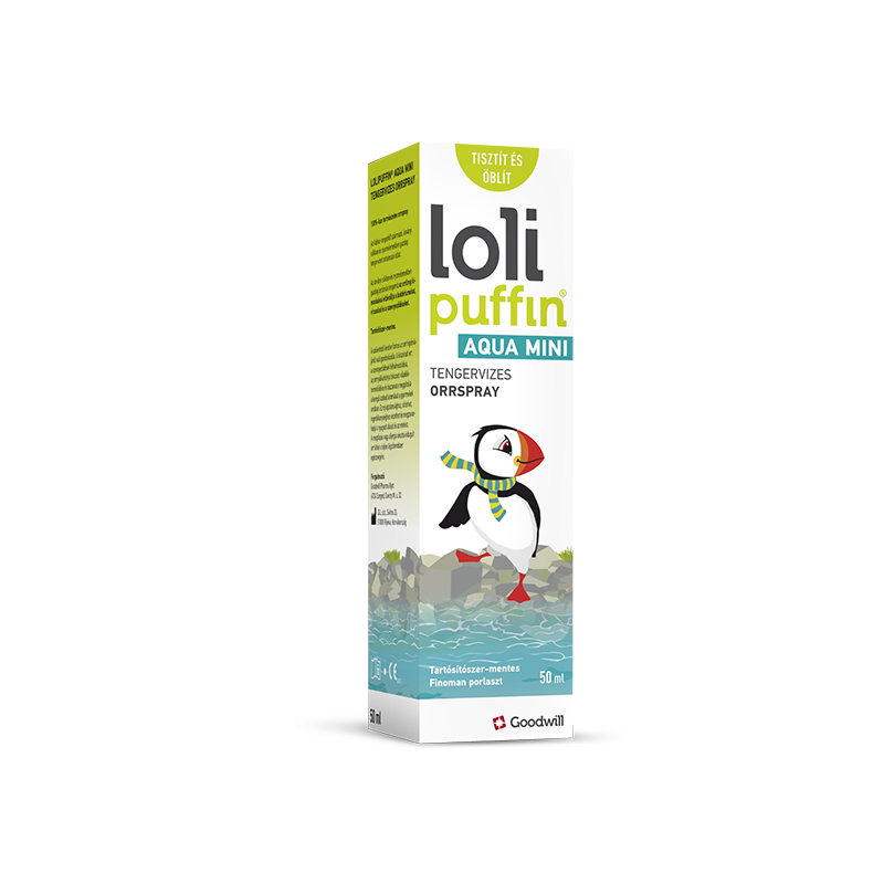 A speciálisan az újszülöttek és kisgyermekek orrnyílásához illeszkedő formájú fújófejjel rendelkező Lolipuffin® Aqua Mini tengervizes orrspray kiöblíti a felgyülemlett váladékot és eltávolítja a kórokozókat, a porszemcséket, az allergéneket és a szennyeződéseket, ezáltal szabaddá teszi a légutakat, valamint hidratálja és megújítja az orrnyálkahártyát.