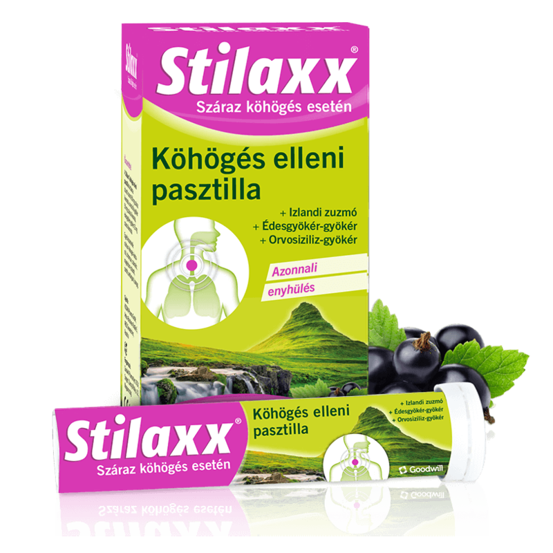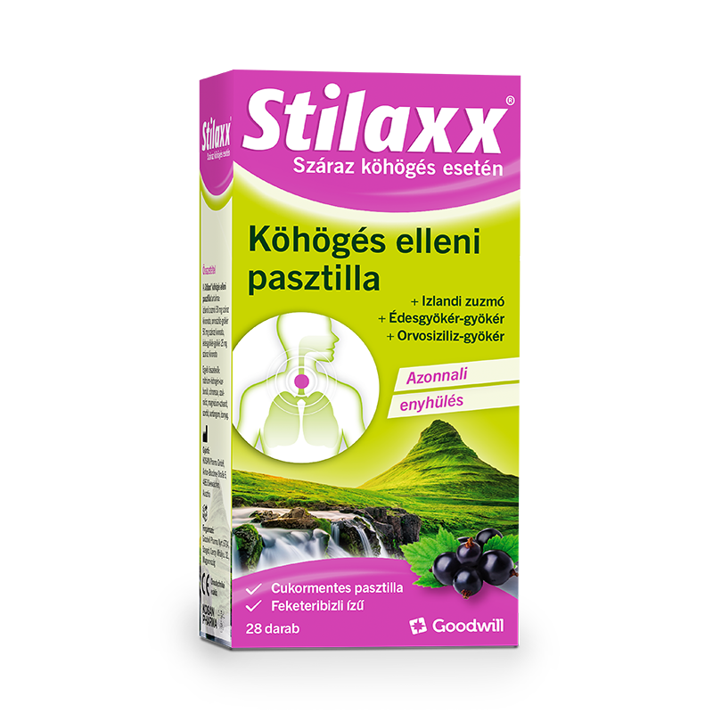 A Stilaxx® köhögés elleni pasztilla száraz köhögés és az ilyenkor fellépő száj- és toroknyálkahártya-irritáció esetén, például köhögési inger és torokirritáció esetén alkalmazható.