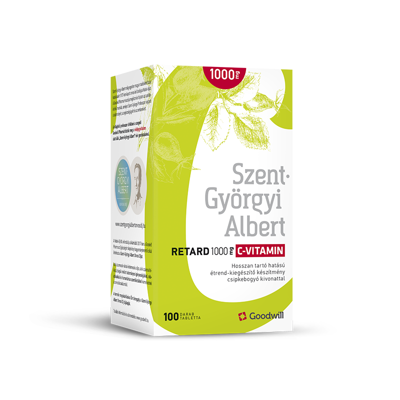 A Szent-Györgyi Albert C-vitamin 1000mg hosszan tartó hatású C-vitamint és csipkebogyó-kivonatot tartalmazó étrend-kiegészítő tabletta. A termék hatóanyaga, a C-vitamin hozzájárul az idegrendszer megfelelő működéséhez, a sejtek oxidatív stresszel szembeni védelméhez, a fáradtság és a kifáradás csökkentéséhez.